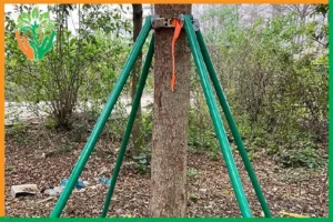 Cố định thân non bằng cọc cho cây đàn hương: chuẩn kỹ thuật trồng mới